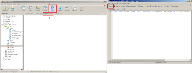Xong rồi nhấn Run là tạo acc xong . Tắt Navicat